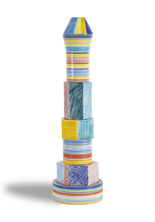 Lotto 982 | PIERO DORAZIO (1927-2005)Torre di babele, 1984Scultura in ceramica policroma...