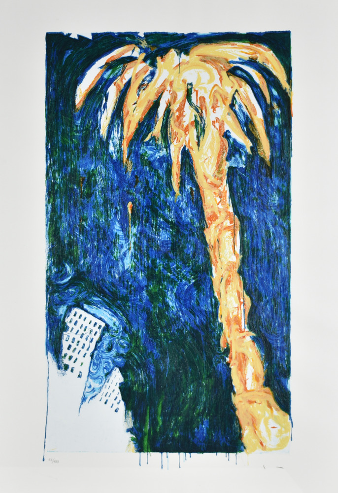 Schifano Mario Palma Dorata serigrafia materica su carta, cm 100x70 esemplare...