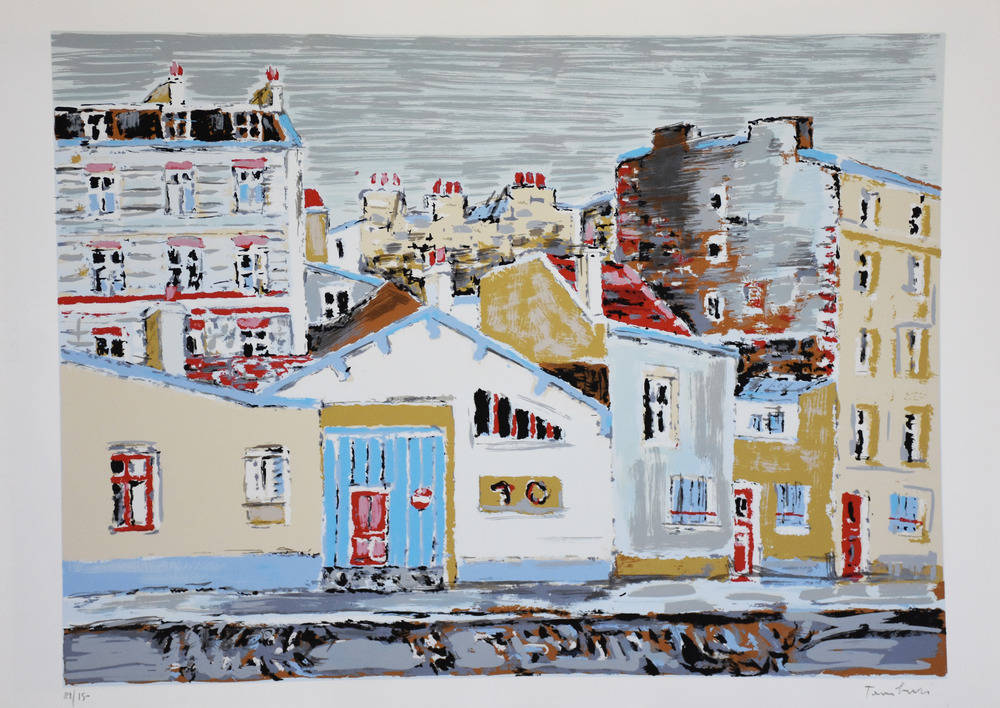Tamburi Orfeo Veduta Parigina litografia su carta, cm 50x70 esemplare 82 su 150 sul fronte: firma