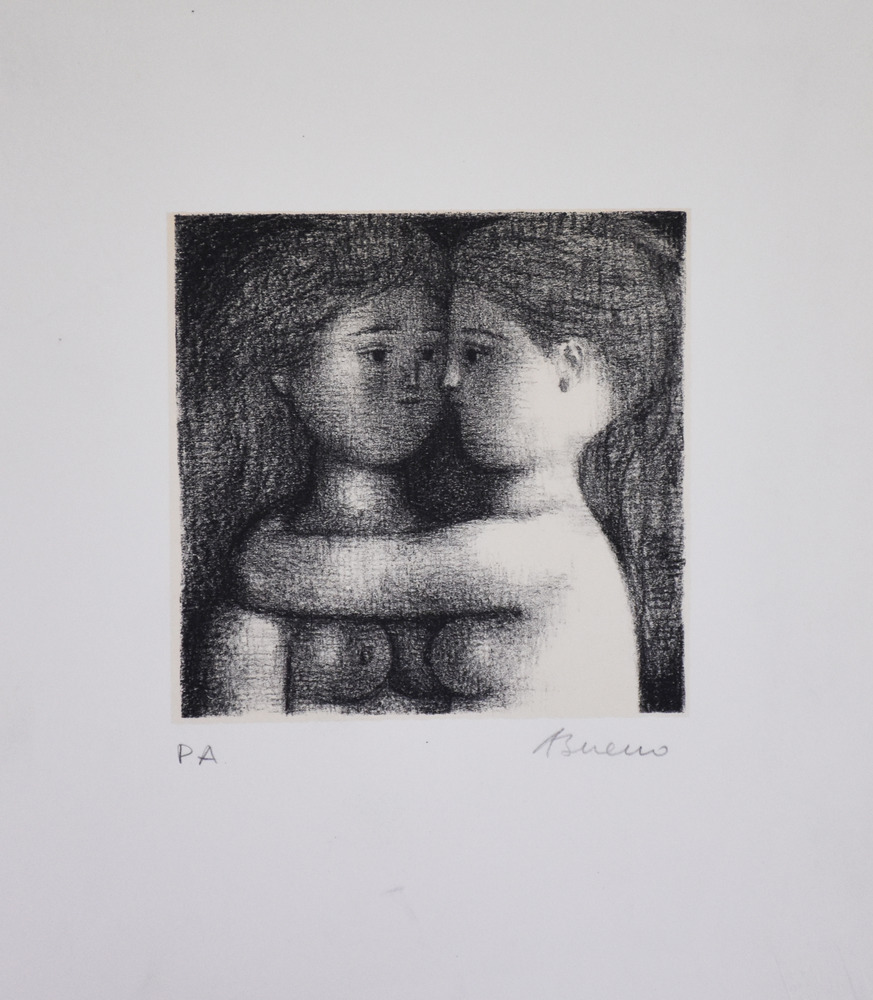 Bueno Antonio L'Abbraccio litografia su carta, cm 27x24 esemplare prova d'autore sul fronte: firma