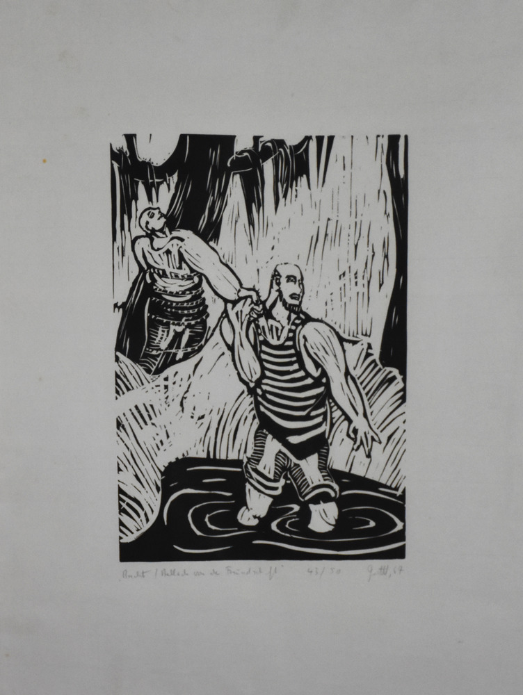 GÖTTL Ballade Von der Freundschaft linoleum, cm 25x36 es.43/50 eseguito nel 1967