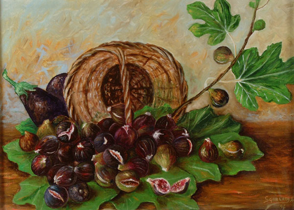 Antonio Sgarlata (Giardini Naxos, 1928) Cesto di fichi, 1994 Olio su tela, cm. 50x70 Firma e dat in basso a destra e sul verso. € 1.000/1.200