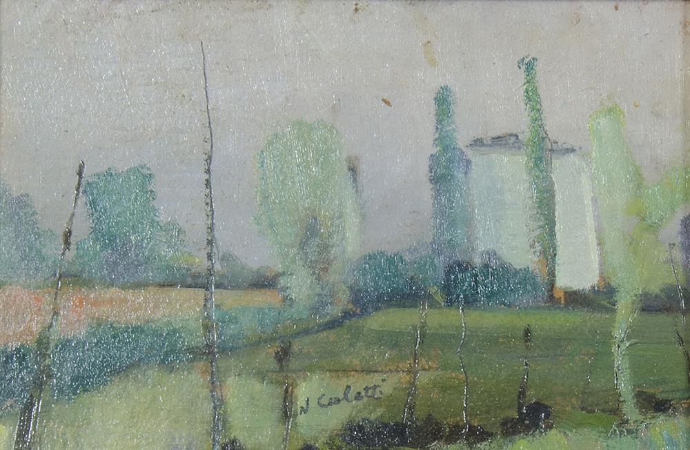 Nando Coletti 1907-1979 "Paesaggio" cm. 14x20 - olio su cartone Firmato al centro.