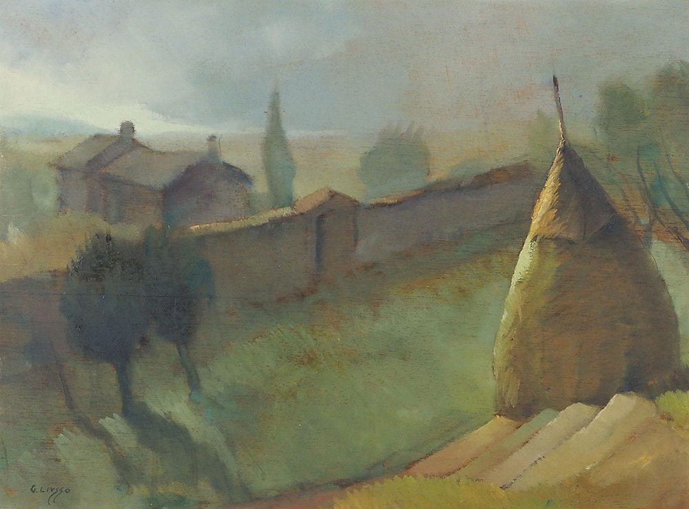 Bepi Liusso 1911-1993 "Mattino d'ottobre" cm. 40x55 - olio su tavola Firmato b. a s. Al retro titolo e firma.