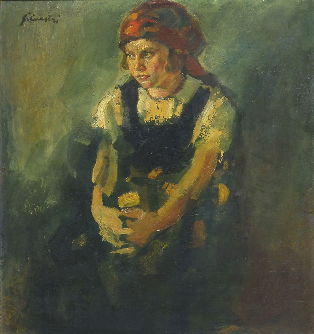 Tullio Silvestri Venezia 1880-Trieste 1963 "Giovane contadina" cm. 63x58 - olio su cartone Firmato alto a s.