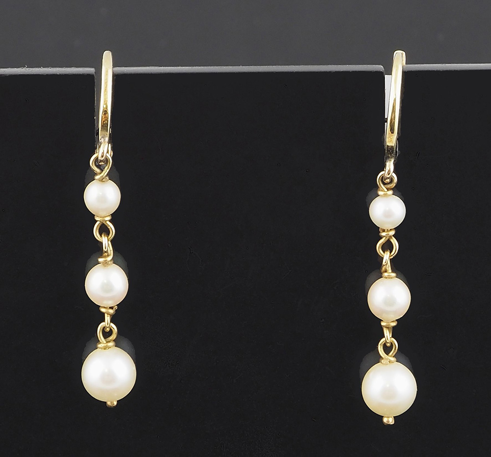 Paio di orecchini in oro giallo a monachella con perline. Gr. tot 2,5.