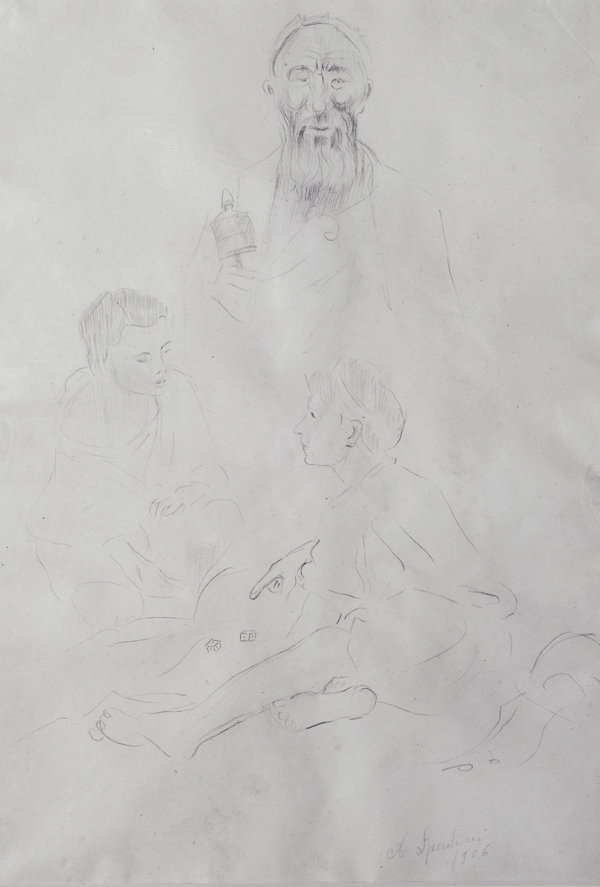 Armando Spadini (Poggio a Caiano, 1883 - Roma, 1925) Il gioco dei dadi, 1906 Matita su carta, cm. 30x20 Firma e data in basso a destra. € 200/300