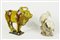 Lotto di 2 sculture in ceramica policroma. H. cm. 33.