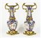 Coppia di grandi vasi in ceramica policroma con decori floreali a due elementi, montatura in bronzo dorato. Fine XIX secolo. H. cm. 52.