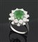 Anello in oro bianco a margherita composta da doppia corona di diamanti taglio brillante per tot ca 2,30, Purezza VVS, colore H, al centro doppietta costituita da 2 berilli naturali incolori uniti con collante verde. Con certificato