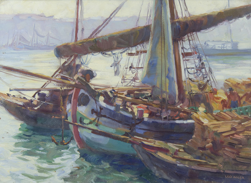 Leo Adler 1897-1987 "Barche di pescatori" cm. 35x48 - olio su cartone Firmato...