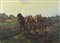 Pittore del XX secolo "Cavalli al lavoro" cm. 50x70 - olio su tela Firmato b. a d.