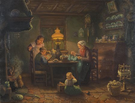 Pittore primi XX secolo "Lavori domestici" cm. 60x80 - olio su tela Firmato...