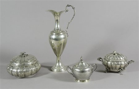 Lotto di 4 oggetti in argento: vaso e 3 zuccheriere. gr. tot 1000.