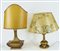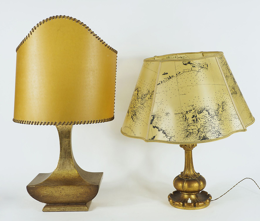 Lotto di 2 lampade da tavolo in legno dorato. H. max cm. 67.