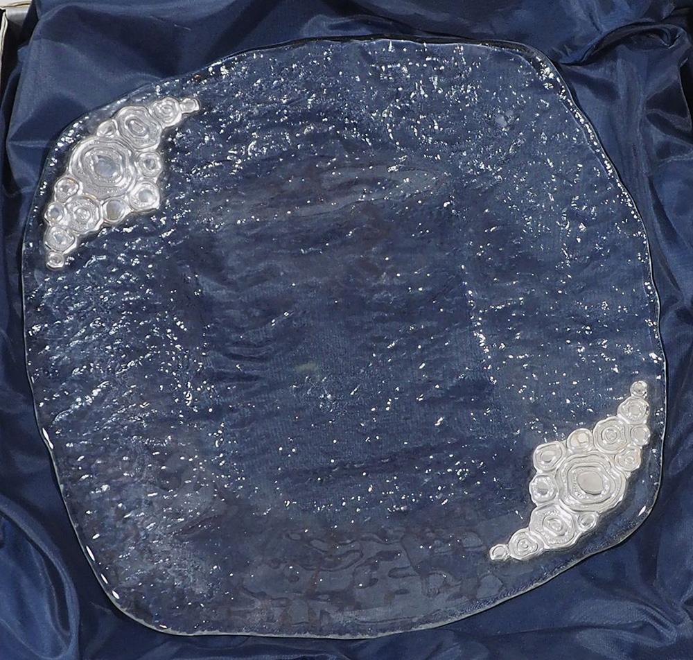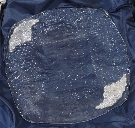 Valori Argenti Centrotavola in cristallo con applicazioni in argento. Entro scatola originale.