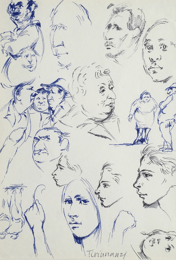 Nino Tirinnanzi (Greve in Chianti, 1923 - 2002) Volti Inchiostro su carta,...