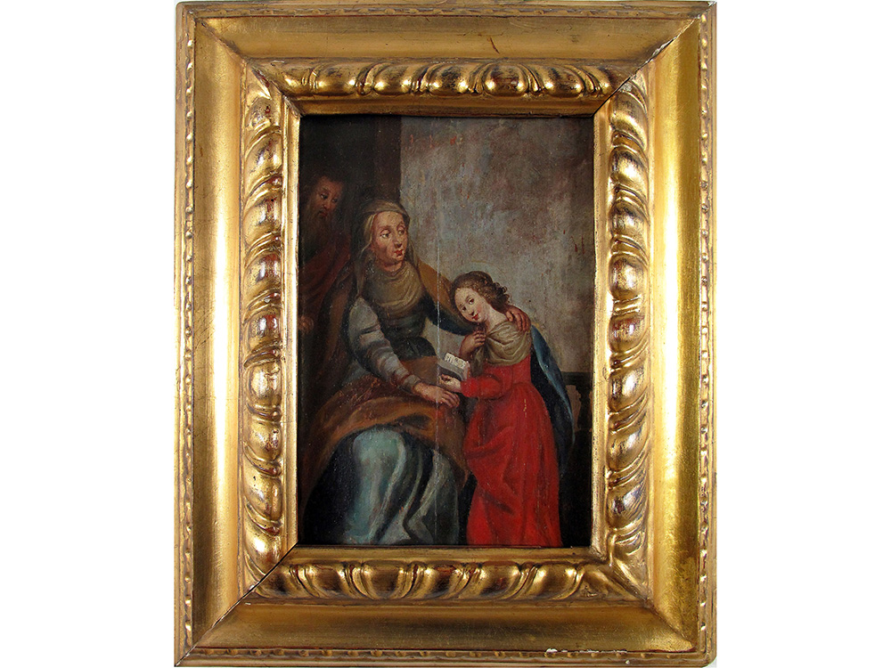 Anonimo (XVIII secolo) Maria Vergine bambina con sant'Anna e san Gioacchino 37,5x28,5 cm Olio su tavola
