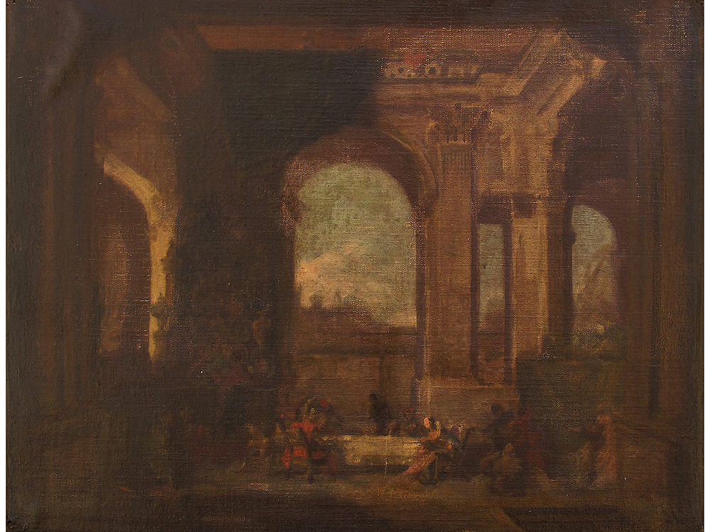 Anonimo (XIX secolo) Interno con figure 30,5x40 cm Olio su tela