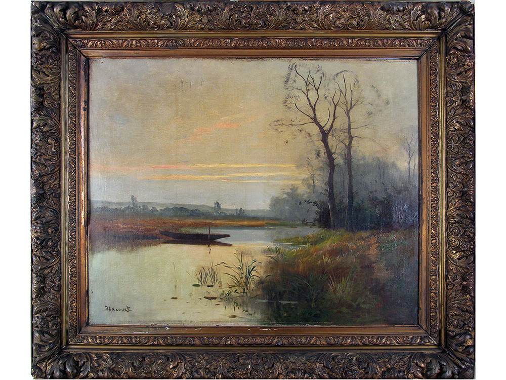 Autore non identificato (XIX secolo) Paesaggio fluviale con barca 81x65 cm...
