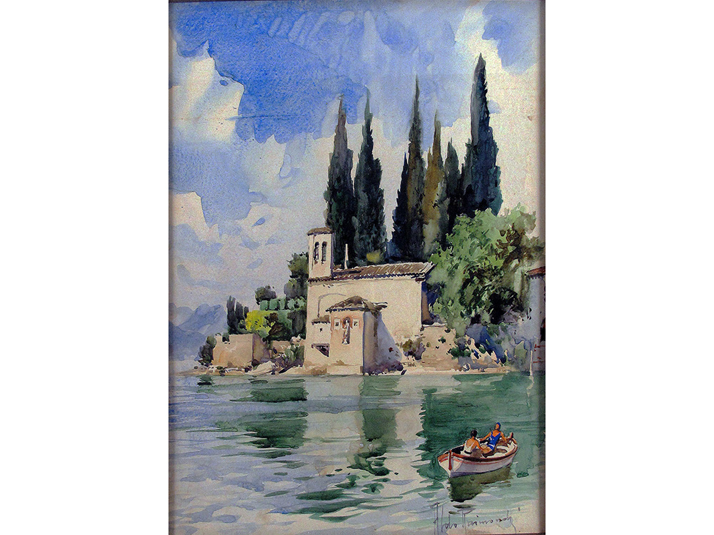 Aldo Raimondi (1902-1997) Lago di garda (Punta san Vigilio) 67x47 cm Acquarello su carta