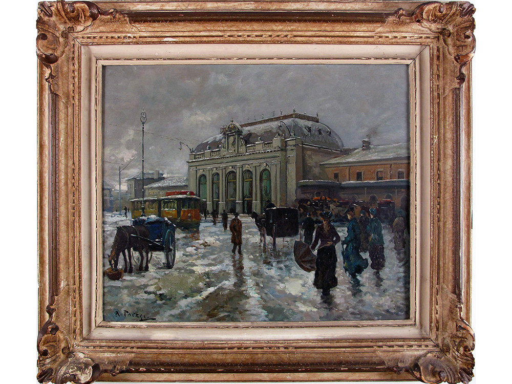 A.Pavesi (XX secolo) Stazione di Milano 50x60 cm Olio su compensato