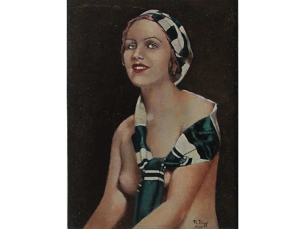 R.Biggi (XX secolo) Nudo di donna 22,5x17 cm Olio su compensato