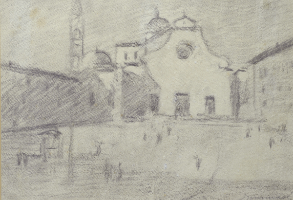 Ludovico Tommasi (Livorno, 1866 - Firenze, 1941) Piazza Santo Spirito Matita...