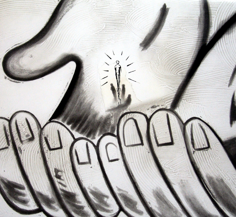 Enzo Cucchi 1949, Morro d'Alba (An) - [Italia] La mana acquaforte acquatinta, carborundum, collage 68x98 cm 1980 es. 11/50; firma dell’artista in basso a destra; opera con cornice certificato di autenticità della FBArte di Ostellato