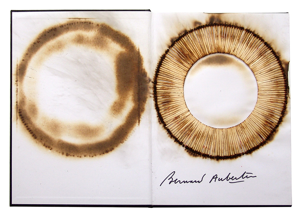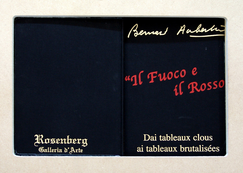 Bernard Aubertin 1934, Fontenay-aux-Roses (Francia) - 2015, Reutlingen (Germania) - [Francia] Livre brûlé - Rosenberg tecnica mista su libro 31x45 cm 2010 firma dell’artista in basso a destra; opera contenuta in teca di plexiglas certificato dell'Archivio Rosenberg di Milano