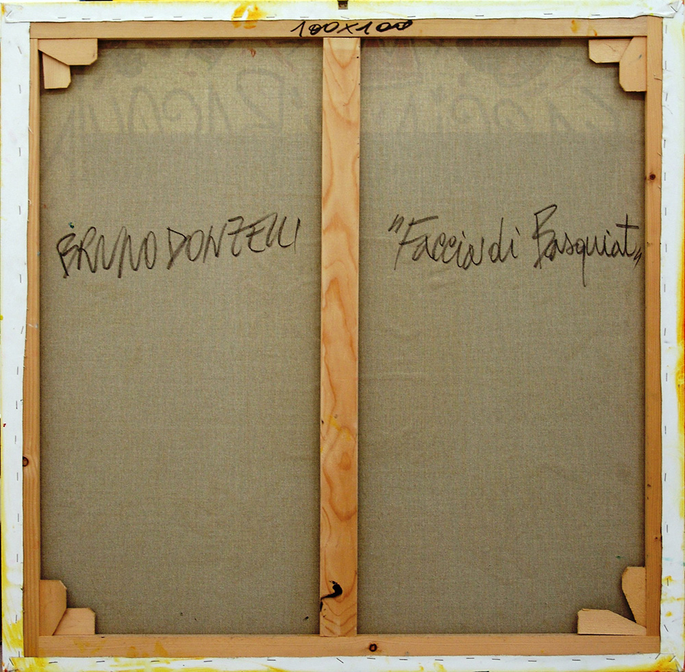 Bruno Donzelli 1941, Napoli (Na) - [Italia] Faccia di Basquiat tecnica mista su tela 100x100 cm firma dell’artista in basso a destra e sul retro certificato di autenticità dell'artista su fotografia