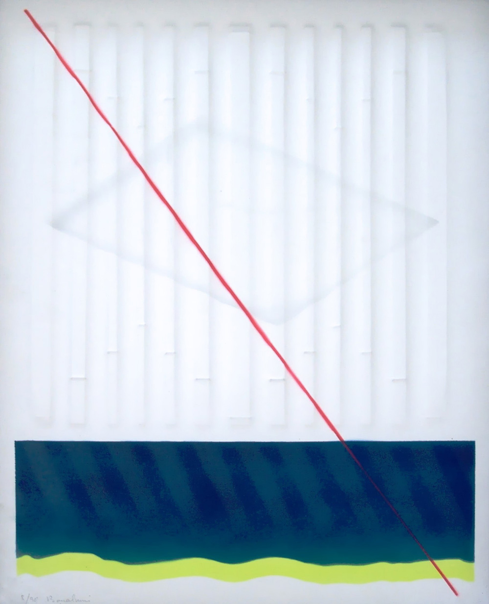 Agostino Bonalumi 1935, Vimercate (Mi) - 2013, Vimercate (Mi) - [Italia] senza titolo serigrafia su carta estroflessa 69x49 cm es. 8/90; firma dell'artista in basso a sinistra; opera con cornice certificato di autenticità Picenum