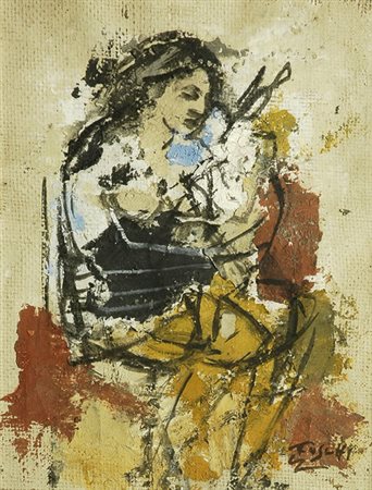 Ermanno Toschi (Lugo di Romagna, 1906 - Fiesole, 1999) Maternità Olio su tela, cm. 25x20 Firma in basso a destra e sul verso. € 150/250