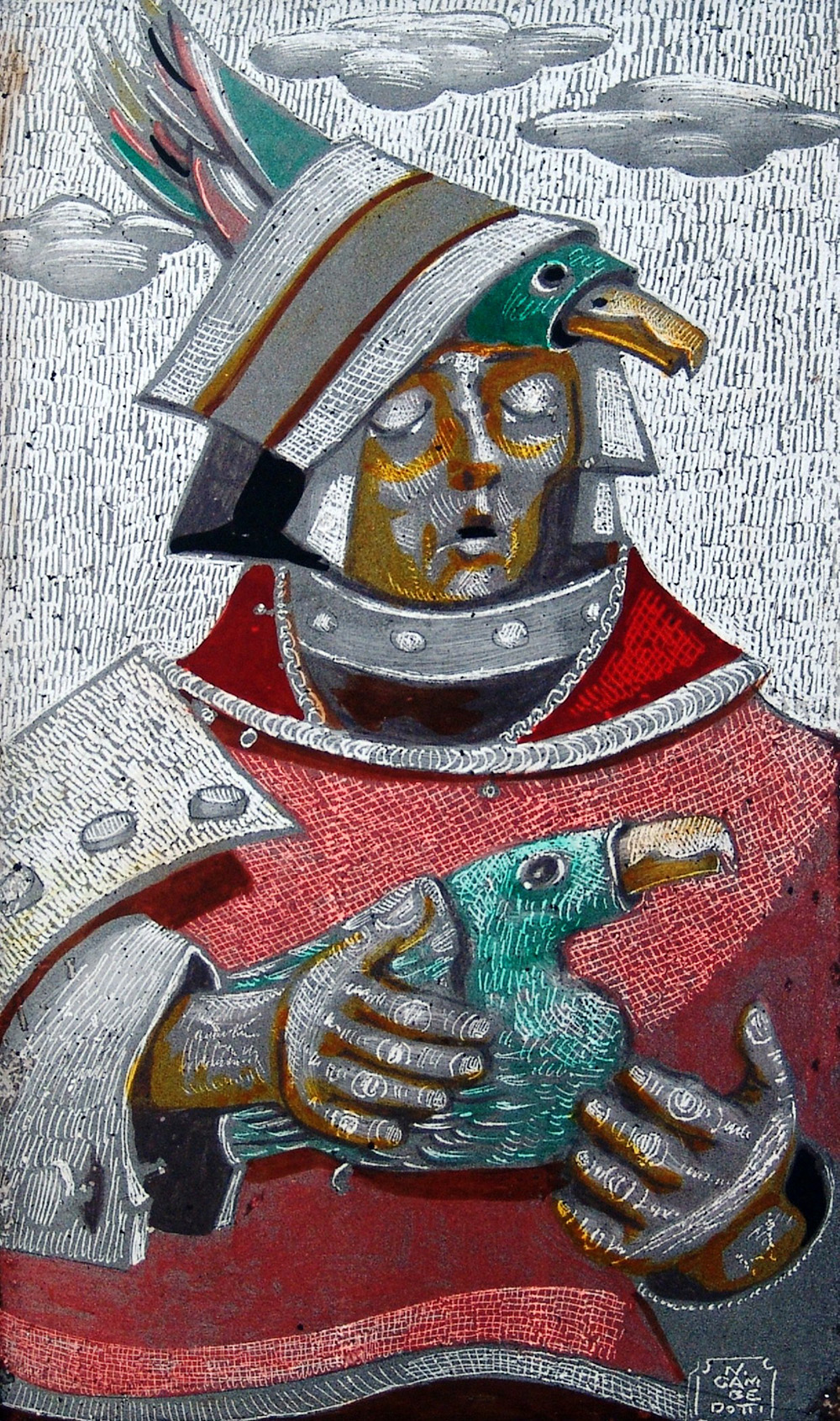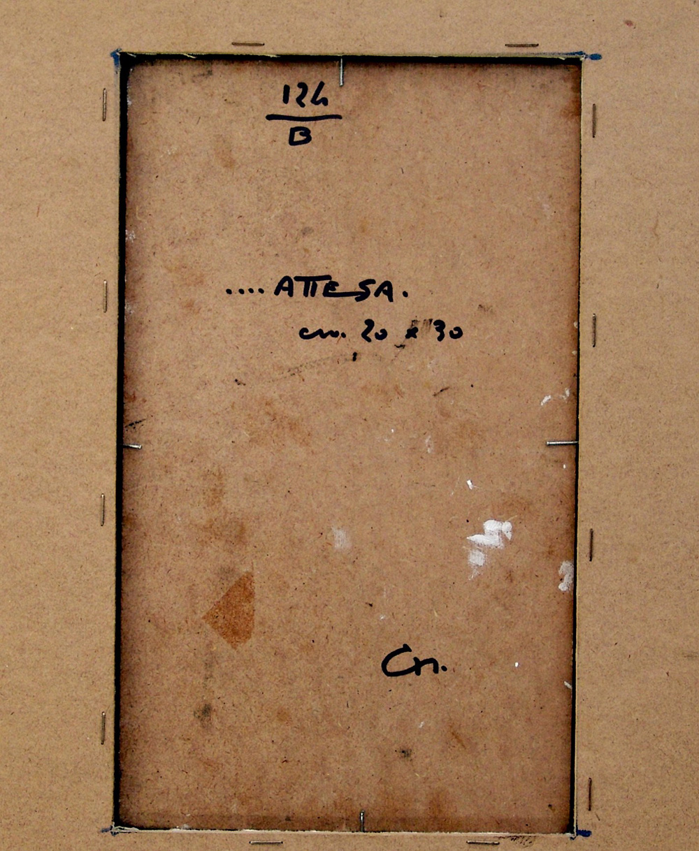 Nicola Gambedotti 1931, Roma (Rm) - 2011, Napoli (Na) - [Italia] …attesa tecnica mista su masonite 30x18 cm c. 1970 firma dell'artista in basso a destra; opera con cornice certificato di autenticità Picenum