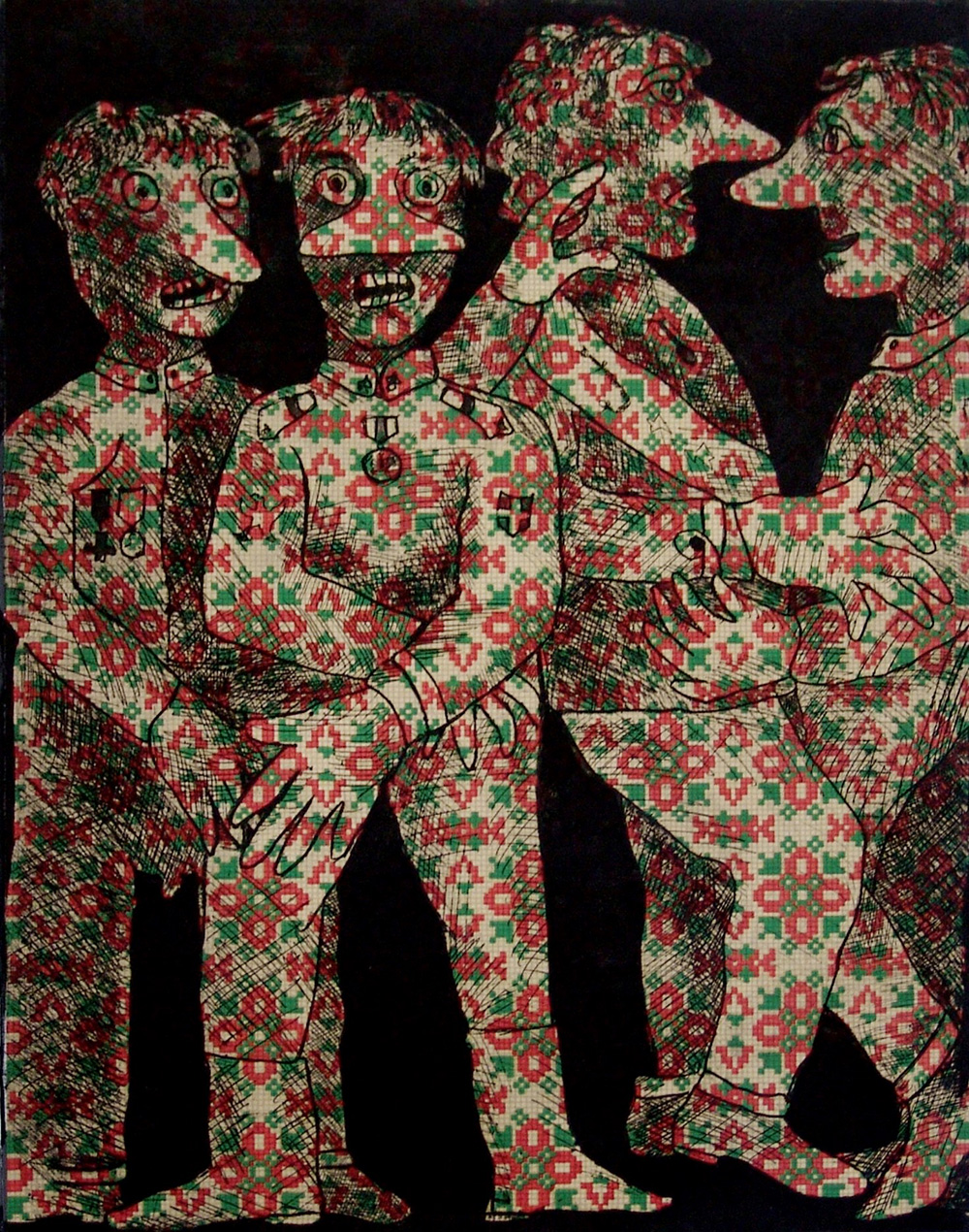 Enrico Baj 1924, Milano (Mi) - 2003, Vergiate (Va) - [Italia] senza titolo acquaforte acquatinta 70x50 cm es. 35/75; firma dell’artista in basso a destra; opera con cornice certificato di autenticità Picenum
