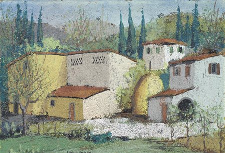 Paolo Toschi Paesaggio Affresco su faesite, cm. 25x35 Firma in basso al centro e sul verso. € 500/900