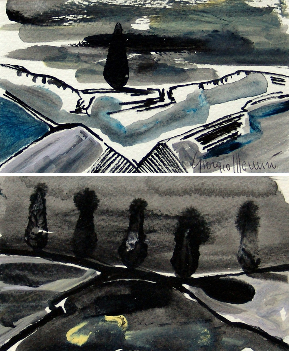 Giorgio Mercuri 1962, Senigallia (An) - [Italia] Mezzanotte (lotto unico con due opere) acquerello su carta 8x13 cm cad. 2015 due acquerelli firmati dall’artista in basso a destra; opere con cornice certificati di autenticità dell'artista su fotografia