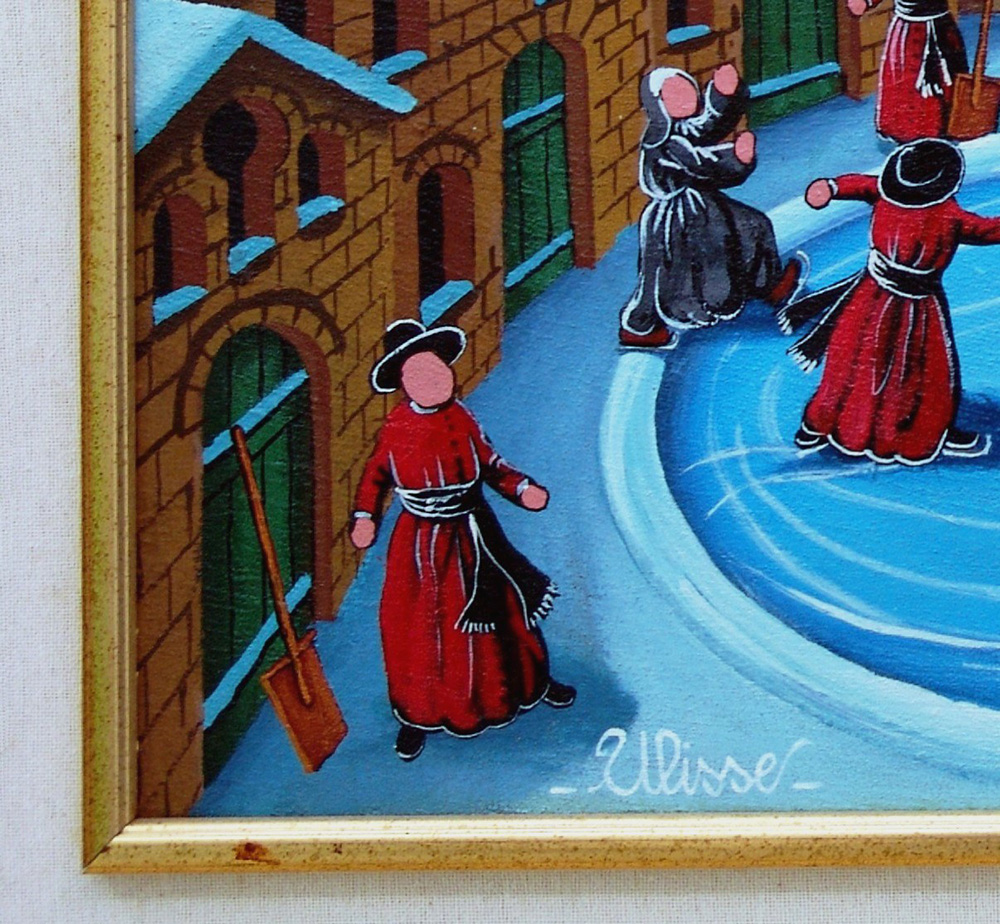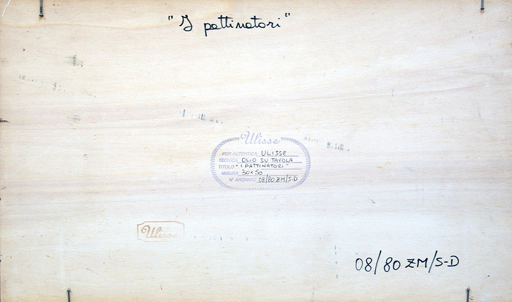 Ulisse 1957, Osimo (An) - [Italia] I pattinatori olio su tavola 30x50 cm 2008 firma dell’artista in basso a sinistra; opera con cornice certificato di autenticità dell'artista con archivio