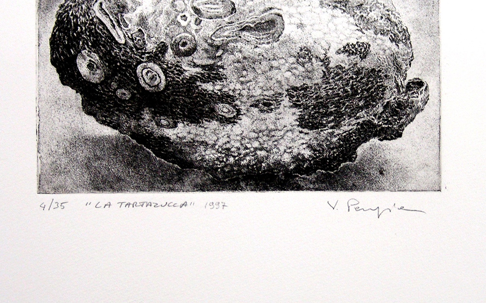 Vinicio Perugia 1947, Fabriano (An) - [Italia] La tartazucca acquaforte 40x53 cm 1997 es. 4/35; firma dell’artista a destra certificato di autenticità Picenum