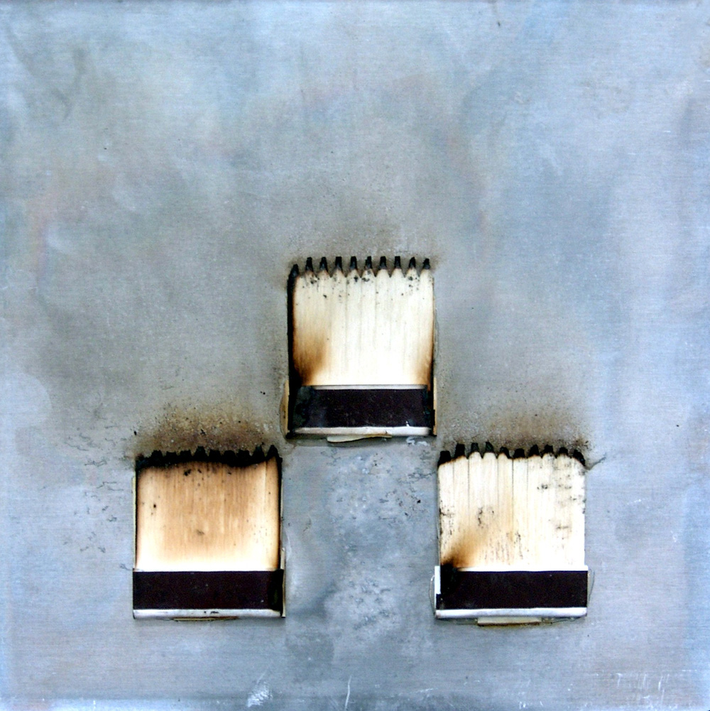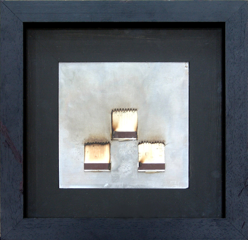 Bernard Aubertin 1934, Fontenay-aux-Roses (Francia) - 2015, Reutlingen (Germania) - [Francia] Dessin de feu fiammiferi bruciati su metallo 20x20 cm 2009 firma dell’artista sul retro; opera con cornice certificato dell'Archivio Bernard Aubertin di Brescia