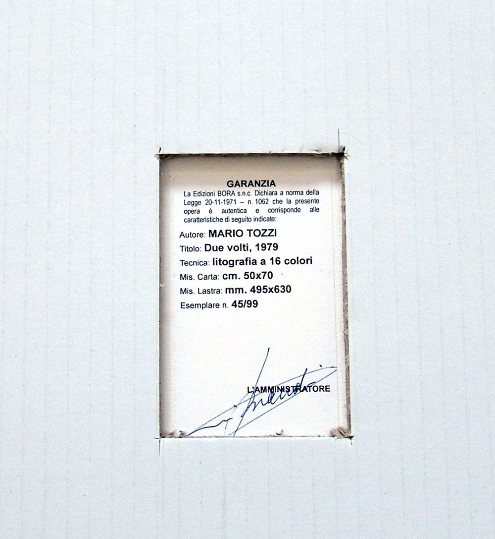 Mario Tozzi 1895, Fossombrone (Pu) - 1979, Saint-Jean-du-Gard (Francia) - [Italia] Due volti litografia 70x50 cm 1979 es. 45/99; firma dell'artista in basso a destra; opera con cornice certificato di autenticità della Edizioni Bora di Bologna sul retro