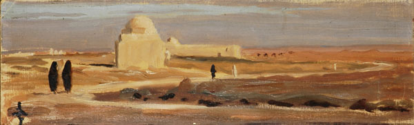 Attr. A Stefano Ussi Paesaggio arabo Olio su cartone, cm. 10x30 € 0/0