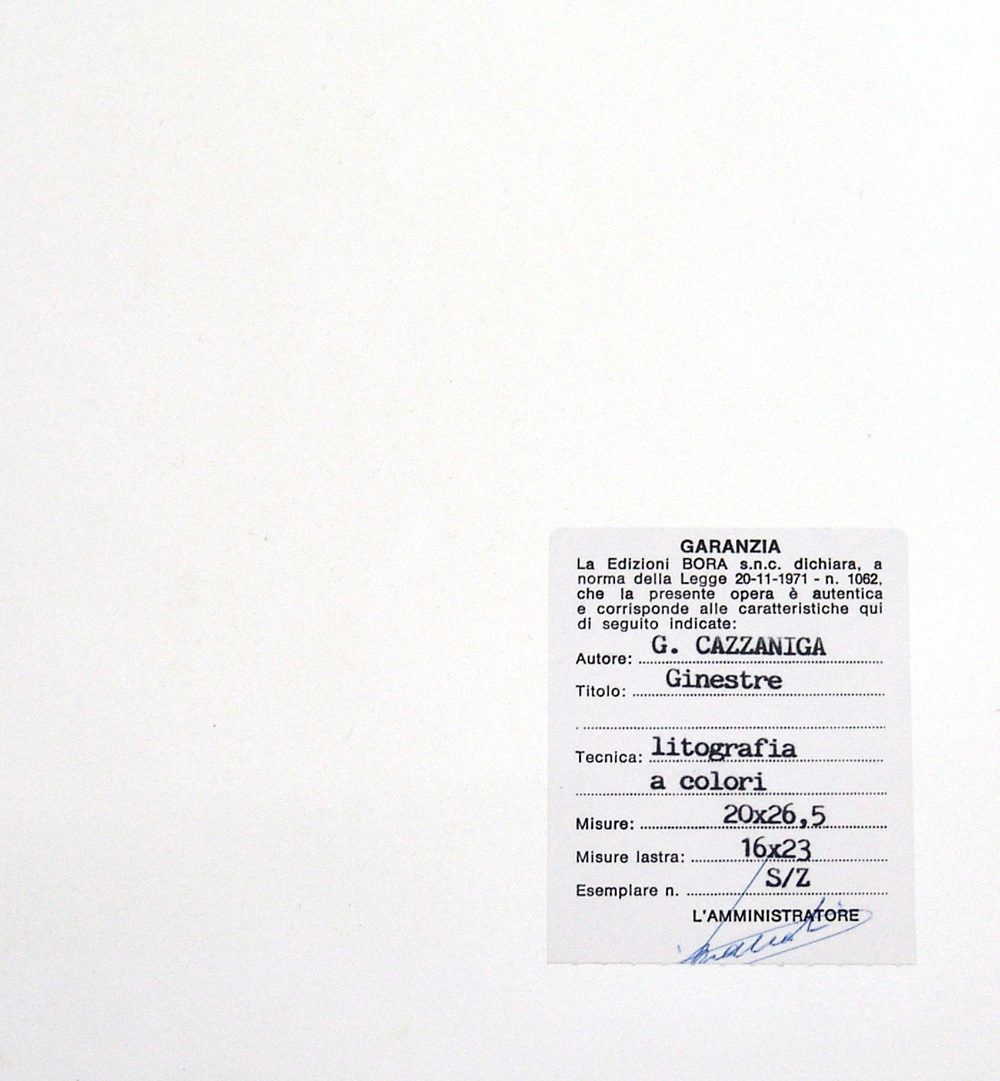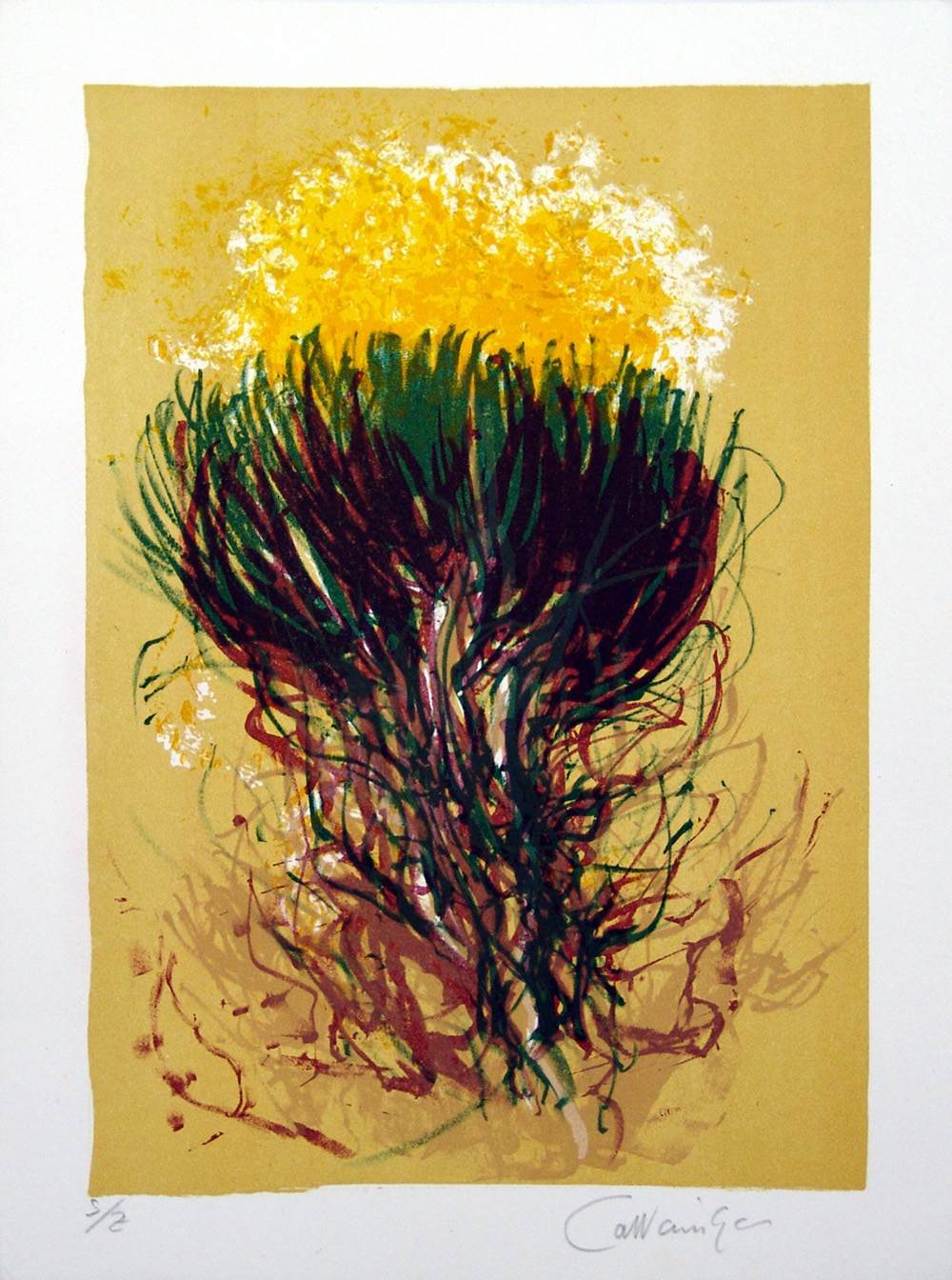 Giancarlo Cazzaniga 1930, Monza (Mb) - 2013, Milano (Mi) - [Italia] Ginestre litografia 26,5x20 cm es. S/Z; firma dell'artista in basso a destra certificato Edizioni Bora sul retro