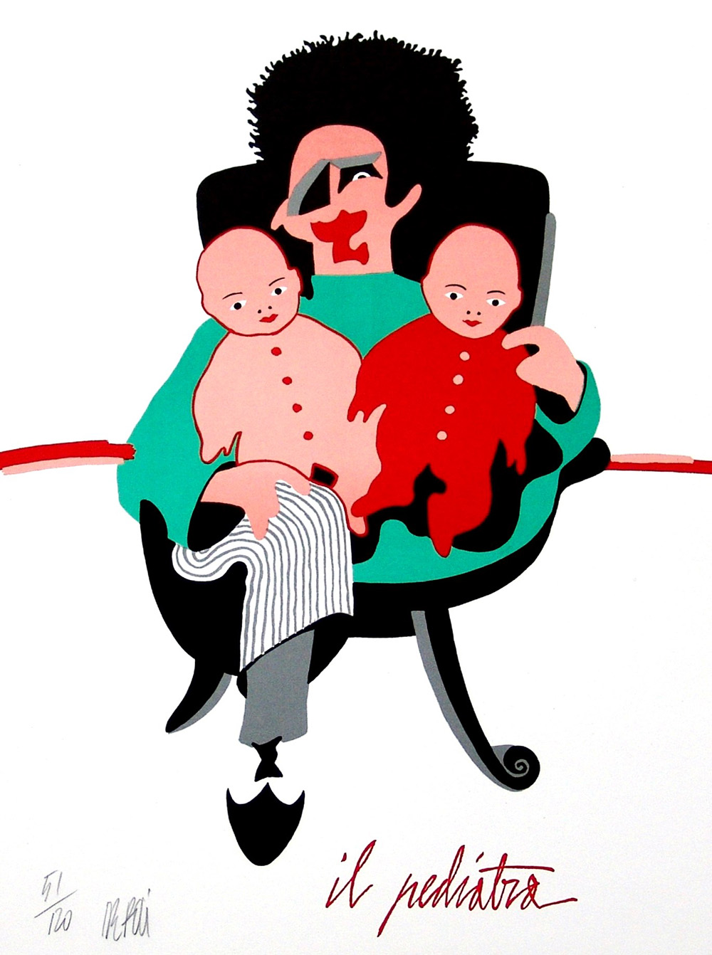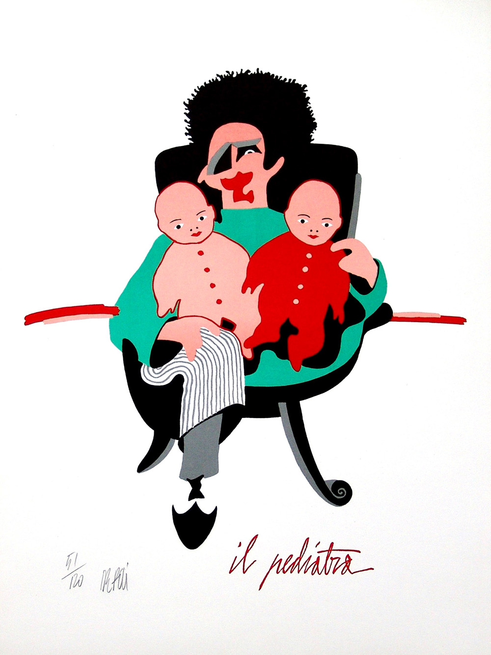 Fabio De Poli 1947, Genova (Ge) - [Italia] Il pediatra litografia 70x50 cm es. 51/120; firma dell’artista in basso a sinistra certificato di autenticità della Galleria GC2 di Terni