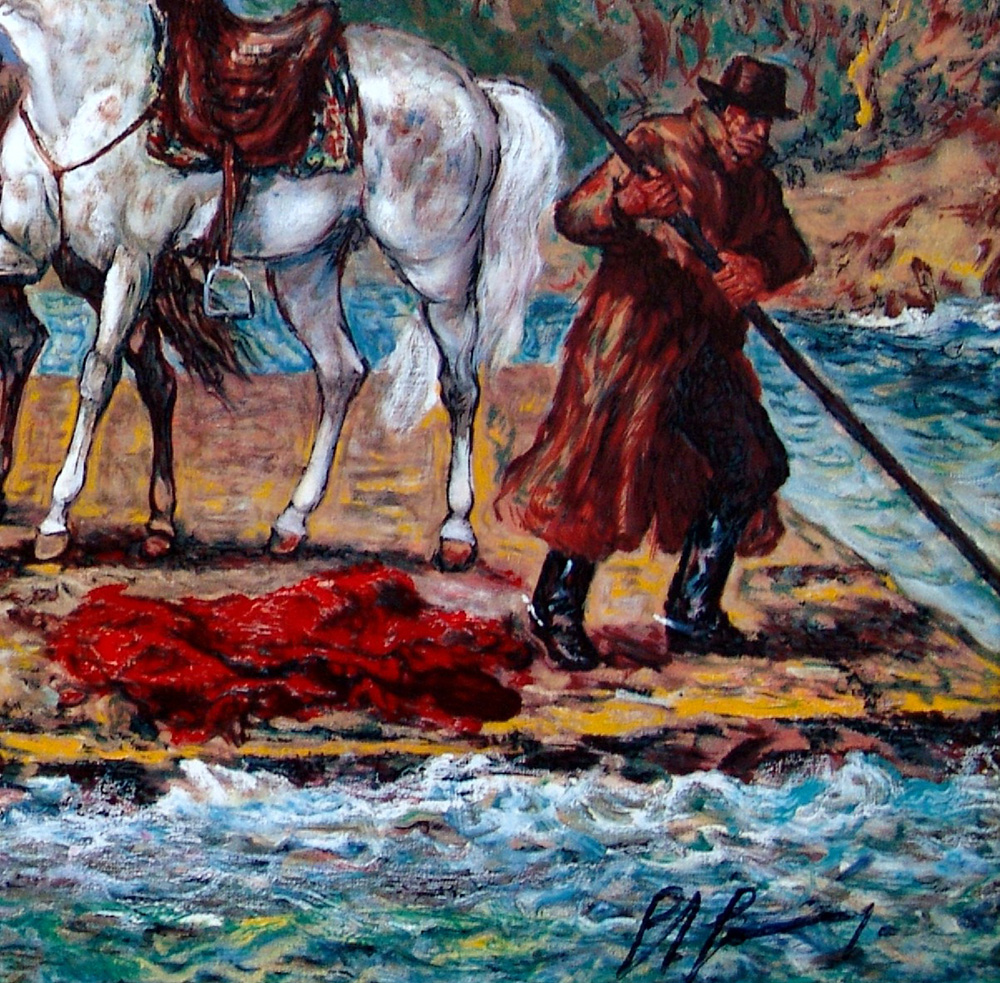 Giovan Francesco Gonzaga 1921, Milano (Mi) - 2007, Milano (Mi) - [Italia] La zattera serigrafia materica su tela 50x70 cm 2001 es. 103/300; firma dell'artista in basso a destra; opera con cornice certificato di autenticità Telemarket