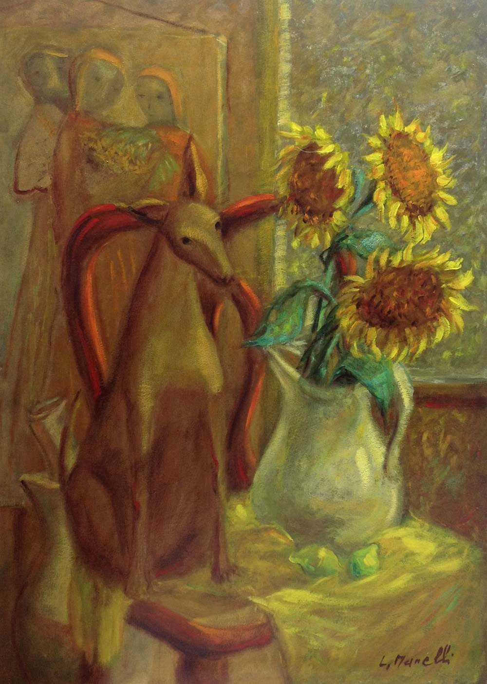 Luciana Manelli 1946, Pinarolo Po (Pv) - [Italia] Cirneco e girasoli olio su...