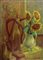Luciana Manelli 1946, Pinarolo Po (Pv) - [Italia] Cirneco e girasoli olio su cartoncino 70x50 cm c. 1990 firma dell’artista in basso a destra e sul retro; opera con cornice certificato di autenticità dell'artista su fotografia