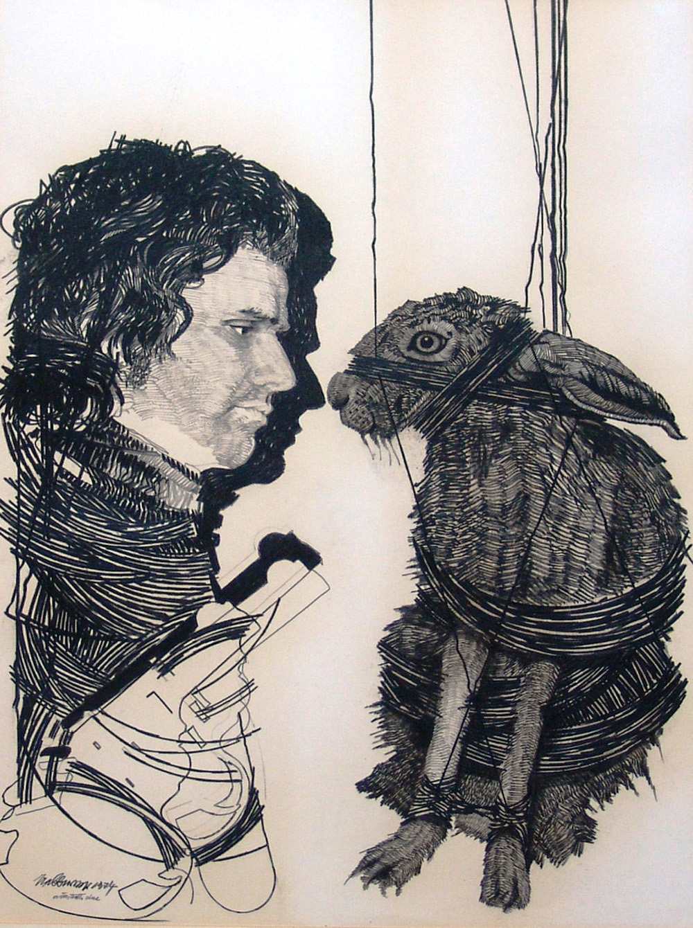Valeriano Trubbiani 1937, Macerata (Mc) - [Italia] Autoritratto tecnica mista su carta 70x50 cm 1974 firma dell'artista in basso a sinistra; opera con cornice certificato di autenticità dell'artista su fotografia; certificato di autenticità della Finarte di Milano