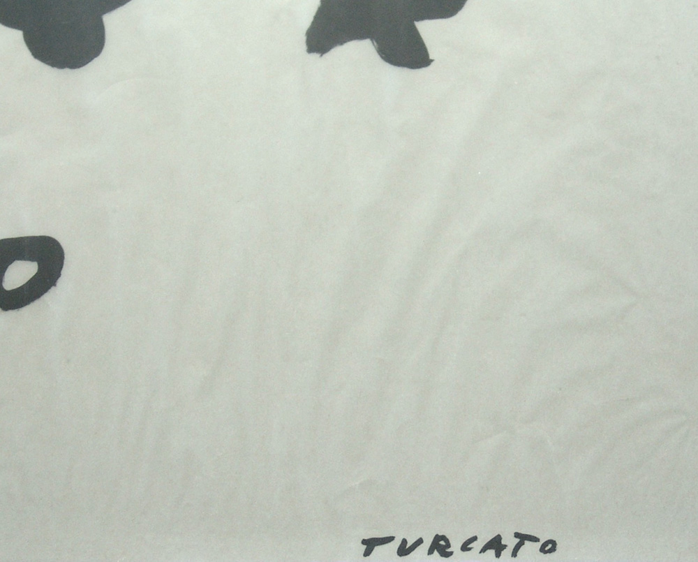 Giulio Turcato 1912, Mantova (Mn) - 1995, Roma (Rm) - [Italia] senza titolo tecnica mista su carta 50x70 cm firma dell’artista in basso a destra; opera con cornice certificato di autenticità Picenum; dichiarazione di autenticità a firma Mariano Imperatori sul retro