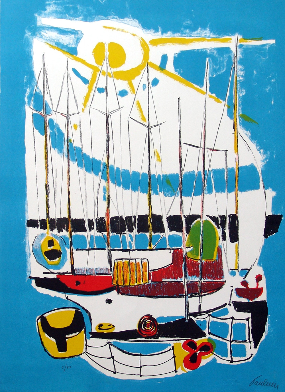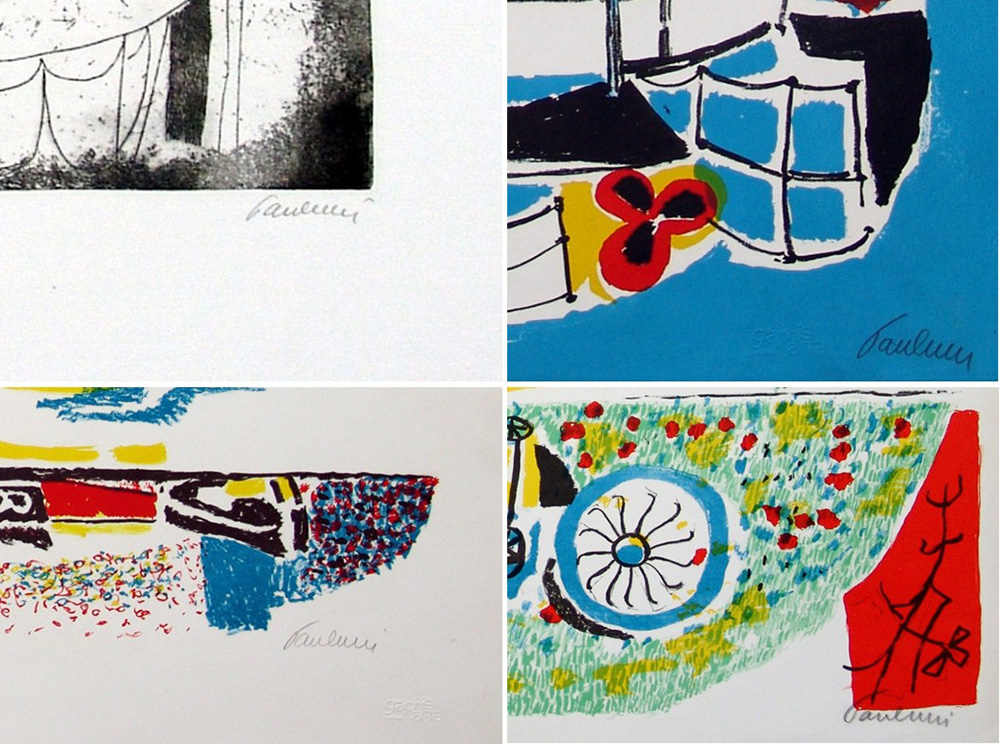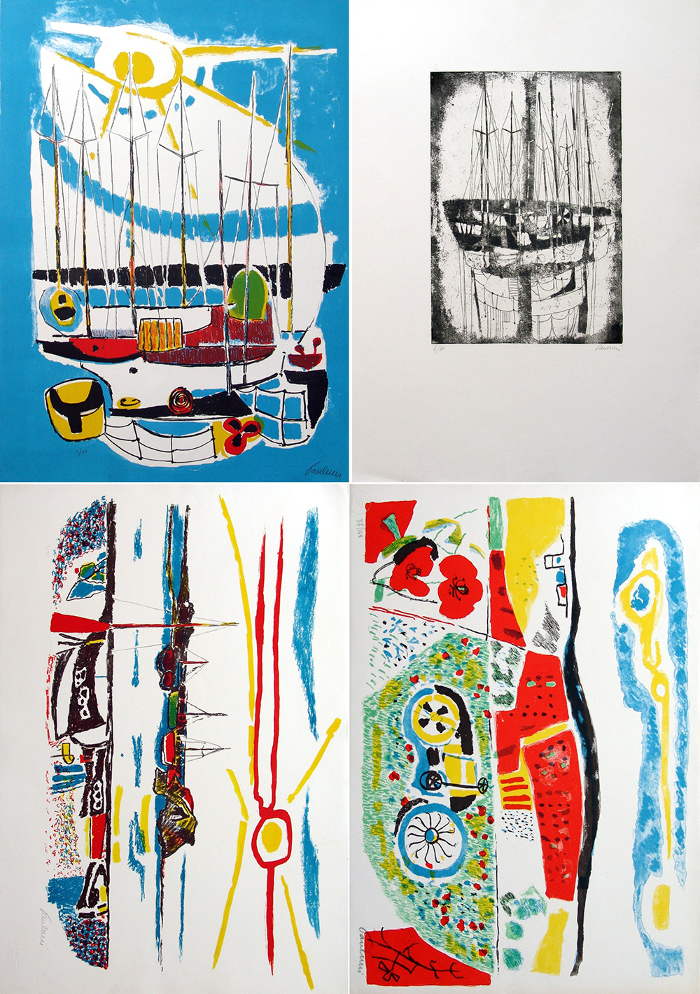 Enrico Paulucci 1901, Genova (Ge) - 1999, Torino (To) - [Italia] senza titolo (lotto unico con quattro opere) litografia 50x70 cm cad. tre litografie ed un'acquaforte firmate dall'artista; i quattro fogli hanno tirature differenti, tre con timbro Graphis Arte di Livorno, l'altra con timbro Espolito di Torino certificato di autenticità Picenum